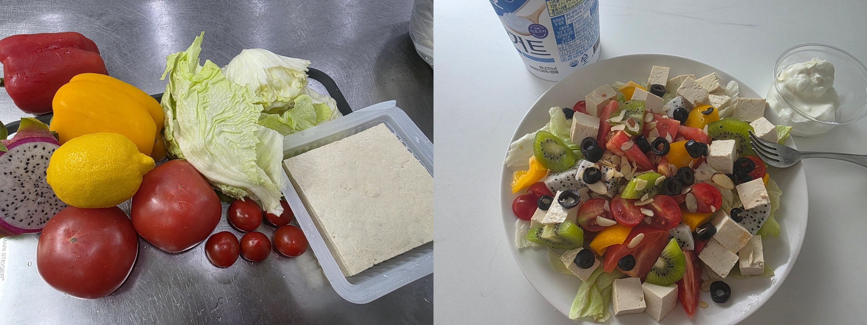 | 단백질 흡수율 | 두부는 식물성이라 흡수율이 낮아요 → 삶은 달걀, 닭가슴살로 보완 |